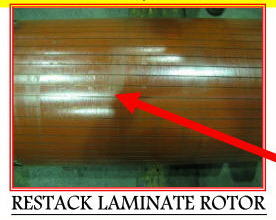 ภาพที่ให้มาดูไม่ออกครับ ว่าเกิดการเสียดสีกันระหว่างสเตเตอร์กับโรเตอร์ตรงไหน( Rubbing) แต่ที่รูปโรเตอร์มีคำบรรยายบอกว่า Restack Laminate Rotor ไม่เข้าใจว่า มีคำแนะนำให้รีสแตก หรือ รีสแตกไปแล้ว คงอยากให้เล่าเรื่องมากกว่านี้หน่อยครับ |