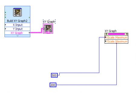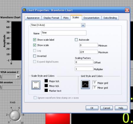 ไม่แน่ใจนะครับว่าใช่หรือเปล่า คลิกขวาที่กราฟ Properties ไปที่ Tap Scales ด้านบนมีช่องให้เลือกแกน x axis,y exis เลือกตั้งค่า ผมก็กำลังหัดเขียนพอดี มีอะไรก็แนะนำกันบ้างครับยังหา web labview ไม่ค่อยเจอเหมือนกัน