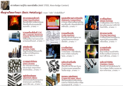 ข้อมูลพื้นฐานเกี่ยวกับ เหล็กกล้าและพื้นฐานโลหะวิทยา ชมสาระและความบันเทิงใน สังคมแห่งการเรียนรู้ เกี่ยวกับ การผลิตเหล็กกล้า/โลหะต่างๆ ความรู้ทางวิศวกรรม/สถาปัตยกรรม และข่าวสารด้านเทคโนโลยีใหม่ล่าสุด เพื่อเป็นการจุดประกาย Architect Engineer และนักคิดหน้าใหม่ บริษัท แมกซ์สตีล จำกัด จำหน่ายเหล็กกล้าเกรดพิเศษนำเข้าคุณภาพสูง มาตรฐานเทียบ DIN, AISI, JIS, ASTM จากประเทศต่างๆในทวีป ยุโรป อเมริกา และเอเชีย เช่น เหล็กงานอะไหล่เครื่องจักร เหล็กงานเครื่องมือ เหล็กงานร้อน เหล็กงานเย็น เหล็กงานแม่พิมพ์ เหล็กทนร้อน เหล็กทนสึก เหล็กทนแรงดัน เหล็กทนแรงดึง สแตนเลส อลูมิเนียม ทองแดง ทองเหลือง แป็ปสเตย์ และโลหะเกรดพิเศษอื่นๆ แหล่งข้อมูล พื้นฐานเกี่ยวกับเหล็กและโลหะวิทยา เช่น การผลิตเหล็กกล้า/โลหะต่างๆ ความรู้ทางวิศวกรรม/สถาปัตยกรรม และข่าวสารด้านเทคโนโลยีใหม่ล่าสุด เรามีผู้เชี่ยวชาญสามารถตอบโจทย์งานวิศวกรรมโลหะของท่าน สนใจติดต่อสอบถามข้อมูลเพิ่มเติมได้ที่ 02-314-0348, 02-314-6890-1, 088-255-1873 www.maxsteelthai.com |