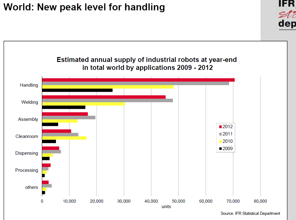 เป็น Handling Robot 43.75% ของยอดจำหน่ายทั้งหมด หรือราว 86,500 unit ในประเทศไทย มียอดจำหน่าย มากกว่า 4000 unit ในปี 2012 |