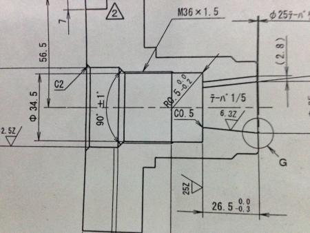 Taper 1/5 คือ ขนาดของ Dia. ลดลง 1 หน่วย ต่อ ระยะทาง 5 หน่วย เช่น ในแบบ ระยะ L = 26.5 = 26.5/5 = 5.3 คุณก็เอาไปหัก ออกจาก ค่า dia. ใหญ่ ส่วนองศา เป็น เท่าไหร่ รบกวนคำนวณเอาเอง (ถ้า ตั้งองศาบนเครื่อง แมนนวล ) |