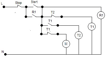 คือจะให้มอเตอร์ทำงาน 5 นาที แล้วหยุด 15 นาที ไปเรื่อยๆ จากวงจรเมื่อกด Start มอเตอร์จะทำงานทันทีและ T1 เริ่มนับเวลา โดย T1 ตั้งไว้ 5 นาที เมื่อครบ 5 นาที มอเตอร์จะหยุด และ T2 เริ่มนับเวลา โดย T2 ตั้งไว้ 15 นาที เมื่อ T2 ครบเวลาจำทำงานและไป Reset T1 แล้วก็เริ่มใหม่ไปเรือยๆ แต่มันไม่เป็นอย่างที่คิด คือเมื่อ T2 นับครบ Timer จะทำงานรัวๆๆๆเลยครับ ผมเข้าใจว่าเมื่อมันทำงานมันก็จะตัดไฟตัวเองด้วยมันจึงเป็นอย่างนี้ แล้วมันจะมีวิธีไหนอีก เลยมาถามผู้รู้ครับ ตามจริงมันมี Timer ทีทำงานเป็น Cycle ขายอยู่ แต่มันแพงครับ แล้วผมก็มี Timer ธรรมดาอยู่แล้ว
