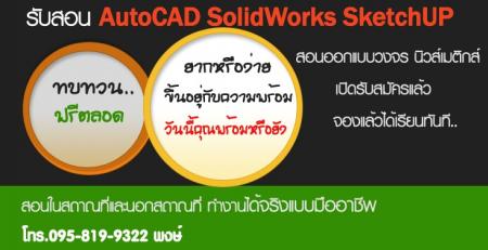 สอนตั้งแต่เริ่มต้นจนสามารถทำงานได้จริงแบบมืออาชีพ เหมาะสำหรับผู้ที่ไม่มีพื้นฐาน ไม่เคยใช้โปรแกรมมาก่อน สำหรับเตรียมสมัครงาน เรียนเป็นความรู้ติดตัว (สอนเนื้อหาครอบคลุมทุกเวอร์ชั่น) การสอนจะเน้นให้ทำแบบฝึกหัด สอนทมุกคำสั่ง Key ลัด Acaddesigns - บริการสอนทั้งนิสิต นักศึกษา นักเรียน ช้าราชการ พนักงานบริษัทและบุคคลทั่วไป สอนจากประสบการณ์จริง ให้คำปรึกษา : หลังจากจบคอร์สแล้ว **ผู้เข้าเรียนควรมีโน๊ตบุคส่วนตัวหรือPC (ถ้าไม่มีกรุณาแจ้งล่วงหน้า) รับสอนเขียนแบบทางวิศวกรรมด้วยโปรแกรม AutoCAD, SolidWorks รับสอนเขียนแบบ AutoCAD รับสอนเขียนแบบ Solisworks รับสอนออกแบบวงจรนิวเมติกส์ รับสอนออกแบบวงจรไฮโดรลิก รับออกแบบ เขียนแบบงานทางด้านวิศวกรรม รับออกแบบวงจรนิวเมติกส์ รับออกแบบวงจรไฮโดรลิก *รับสอนเขียนแบบวิศวกรรม สามารถนำไปใช้งานจริงได้* *เหมาะสำหรับนักศึกษา วิศวกร และผู้สนใจงานออกแบบเขียนแบบเชิงวิศวกรรม* เรียนก่อน สอนก่อน เก่งก่อน เทพก่อน ทำงานก่อน ติดต่อ: คุณพงษ์ โทร: 095-81199-322 line : acaddesigns email: acaddesigns@hotmail.com http://www.acaddesigns.com/ http://www.facebook.com/Acaddesigncenter |