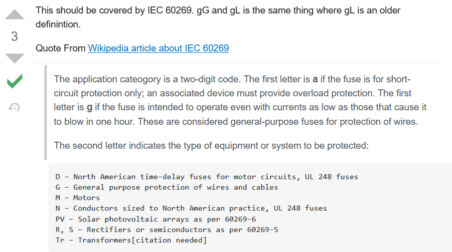 gG, gL NH Fuse ฟิวส์สำหรับงานป้องกันกระแสเกิน หรือ การลัดวงจร Short circuit ซึ่งเหมาะสำหรับงานป้องกันระบบไฟฟ้าทั่วไป โดยสามารถทนกระแสลัดวงจร ได้สูงสุดถึง 120kA aM, gM NH Fuse ฟิวส์สำหรับมอเตอร์ ซึ่งเหมาะสำหรับงานป้องกันมอเตอร์โดยเฉพาะ โดยสามารถทนกระแสลัดวงจรได้สูงสุดถึง 120kA uR ฟิวส์สำหรับอุปกรณ์เซมิคอนดักเตอร์ SCR, Transistor หรือ อุปกรณ์อิเล็กทรอนิกส์ ซึ่งจะเป็นฟิวส์ชนิดขาดเร็ว Fast Acting Fuse สามารถทนกระแสลัดวงจรได้สูงสุดถึง 100kA gPV ฟิวส์สำหรับแผงโซล่าเซลล์ (Solar Cell) ซึ่งเป็นแรงดัน DC สามารถทนกระแสลัดวงจรได้สูงสุดถึง 30kA |