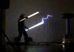 Discharging 2 uF 100 KV Capacitor with 10M ohm resistor cause a long-time weak arc.This experiment is done in High Voltage Lab. of University of Tehran.