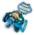 ในการทำงานของปั๊มหอยโข่ง การหมุนของใบพัดทำให้เกิดแรงเหวี่ยงไปผลักดันให้ของเหลวไหลตลอดแนวเส้นรอบวงเรือนปั๊ม จะทำหน้าที่รวบรวมของเหลวไปสู่ทางออก ทำให้ของเหลวมีเฮดรวม